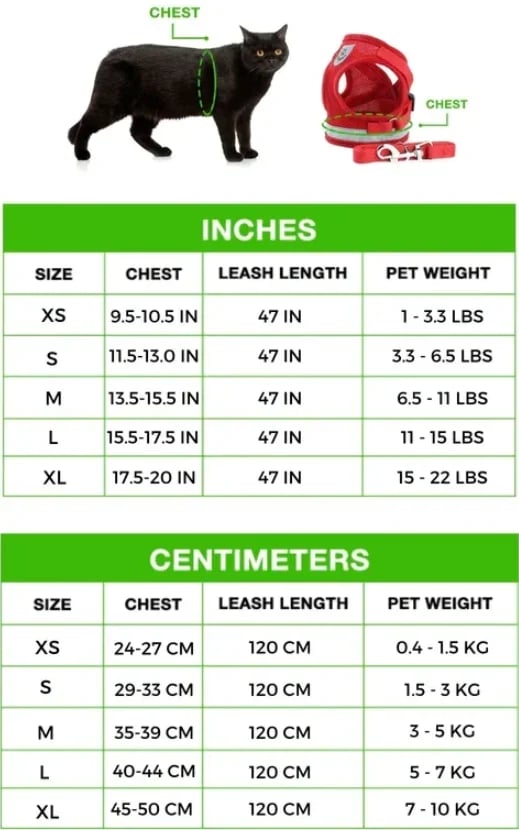 🐾PERFECT FIT: The Harness is adjustable and comes in several different sizes to ensure a perfect fit for your cat. This makes sure your cat stays in the harness securely for maximum comfort and safety.