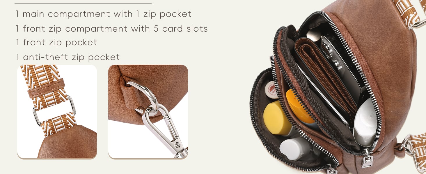 Trendy triple cross body bags has 2 large zipper pocket, 1 inner zipper pocket, 5 card slots and 2 front zipper pocket, large capacity can meet your daily needs. You can store your cell phone, wallet, keys, lipstick, napkins and other daily necessities.